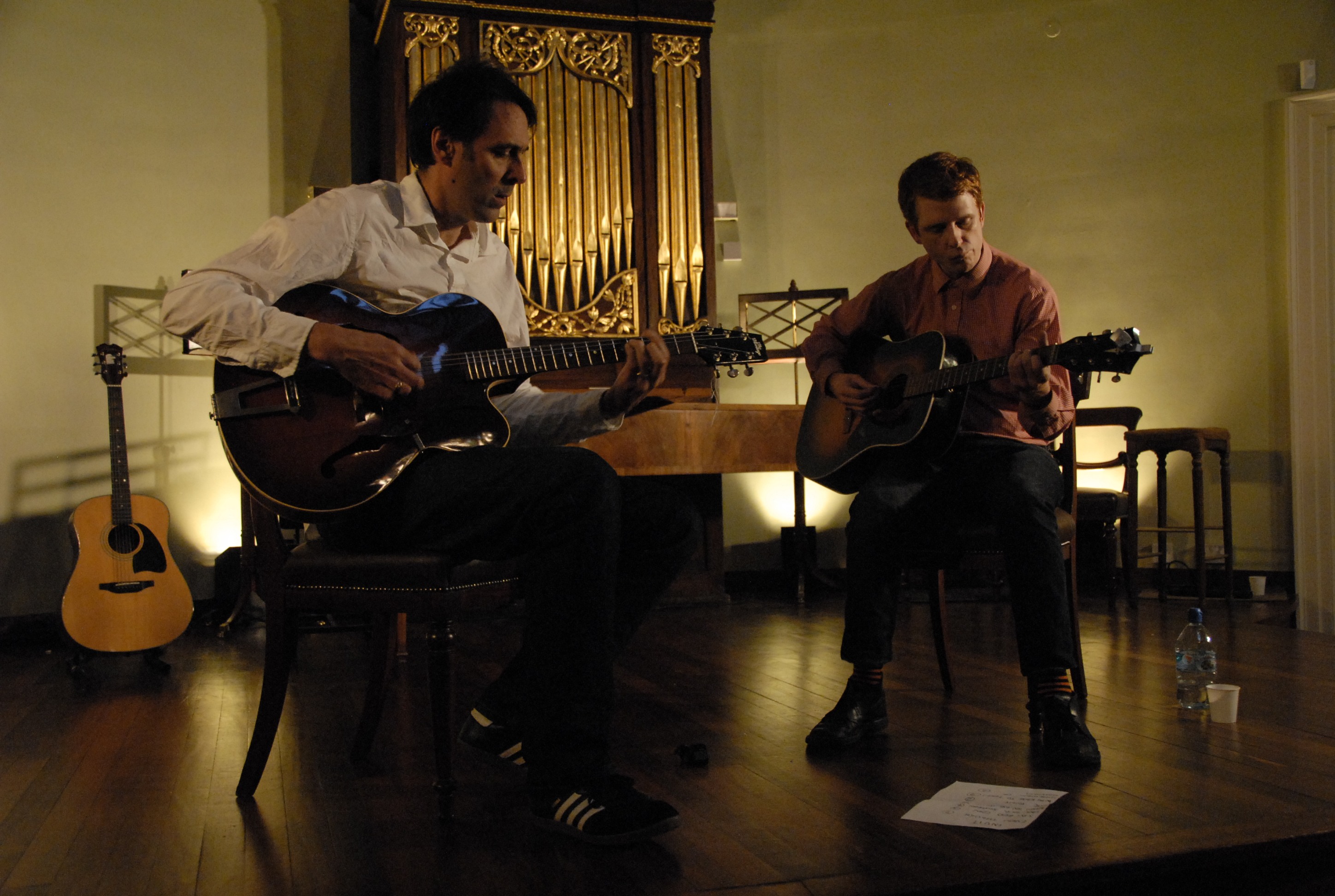 Correcto frontman Danny Saunders describes the band as ‘a bit of a revolving door’ – as since they formed in Glasgow in 2003 the line-up has included curator Will Bradley, Franz Ferdinand’s Paul Thomson, and Patrick Doyle (The Royal We), Jake Lovatt (Uncle John & Whitelock and Colin Kearney (Bricolage). However, since the outset the two constants in Correcto’s spiky new-wave sound have been songwriter, singer and guitarist Saunders and guitarist Richard Wright. Both trained as artists –Wright is well known for his dazzling and often vast site-specific wall paintings, made using ‘the most direct and simple means possible’ – brushes and paint. Saunders is still involved in art as a producer/facilitator of installations, but attests, ‘I think music is the most exciting art form out there.’ Influences revealed on their eponymous debut album (released in 2007 on Domino records) included the Kinks, Velvet Underground, Brian Eno, the Ramones, Creation, Bob Dylan, The Smiths, The Modern Lovers and PiL or, as Saunders puts it, ‘all the good stuff’. For Three Blows, Saunders and Wright played a reworked acoustic set of Correcto songs.