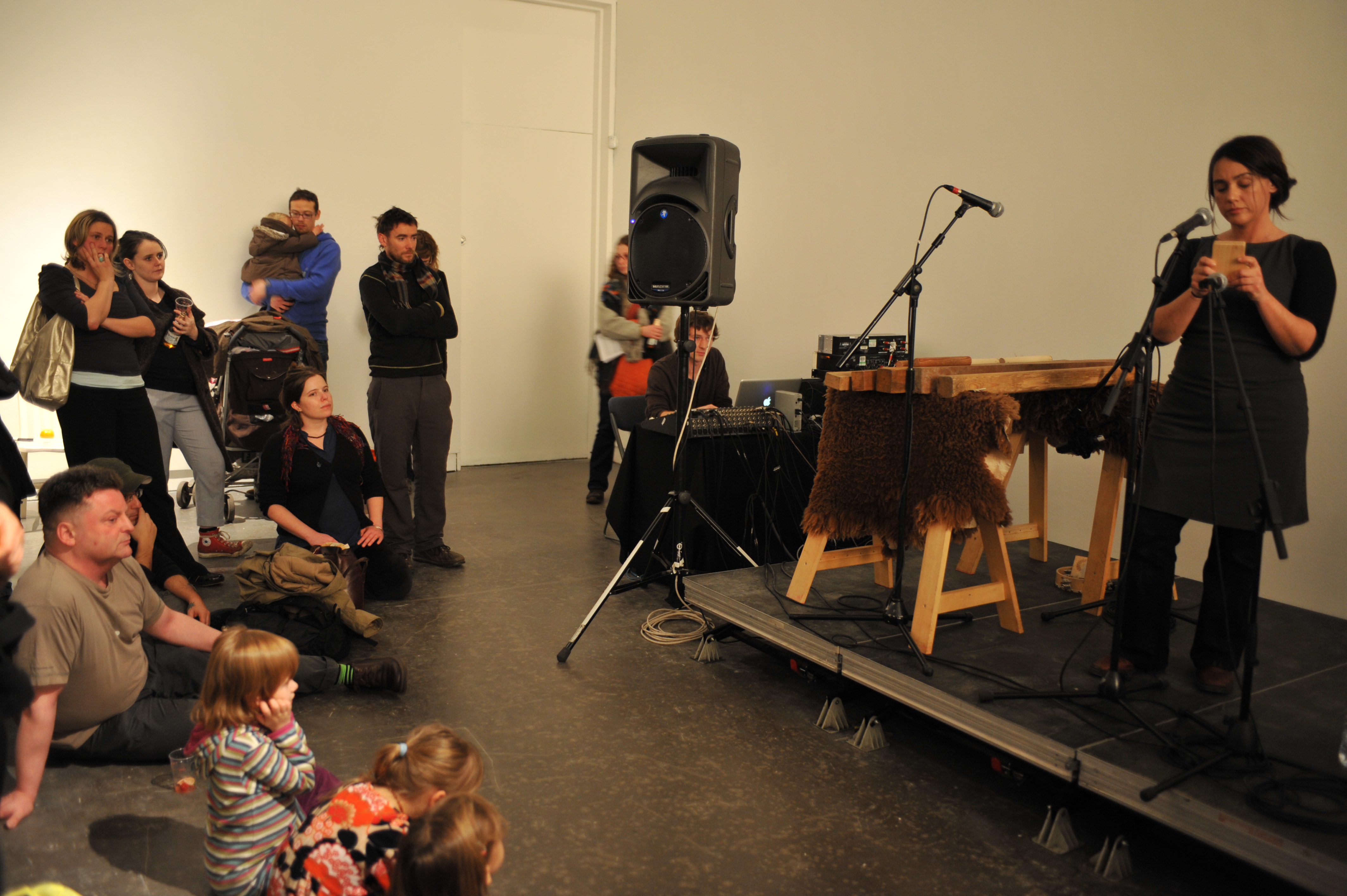 Nerea Bello, accompanied by Shane Connolly (2009). A recording of a performance made on the opening night by Basque singer Nerea Bello in response to the other works in the exhibition. Bello has a ‘passion for voice, the broken voice that carries bad news, that of a distant argument, of protests and after dinner songs, laughter, whispers, breaths, howlings of labour, sadness, joy. Voices tuned to train sounds, to radios crackling, to a baby’s cry, a toy, a bread maker, thunder, car horns, anything is an excuse to experiment with voice’. The recording will be played at one-hour intervals in the exhibition space.