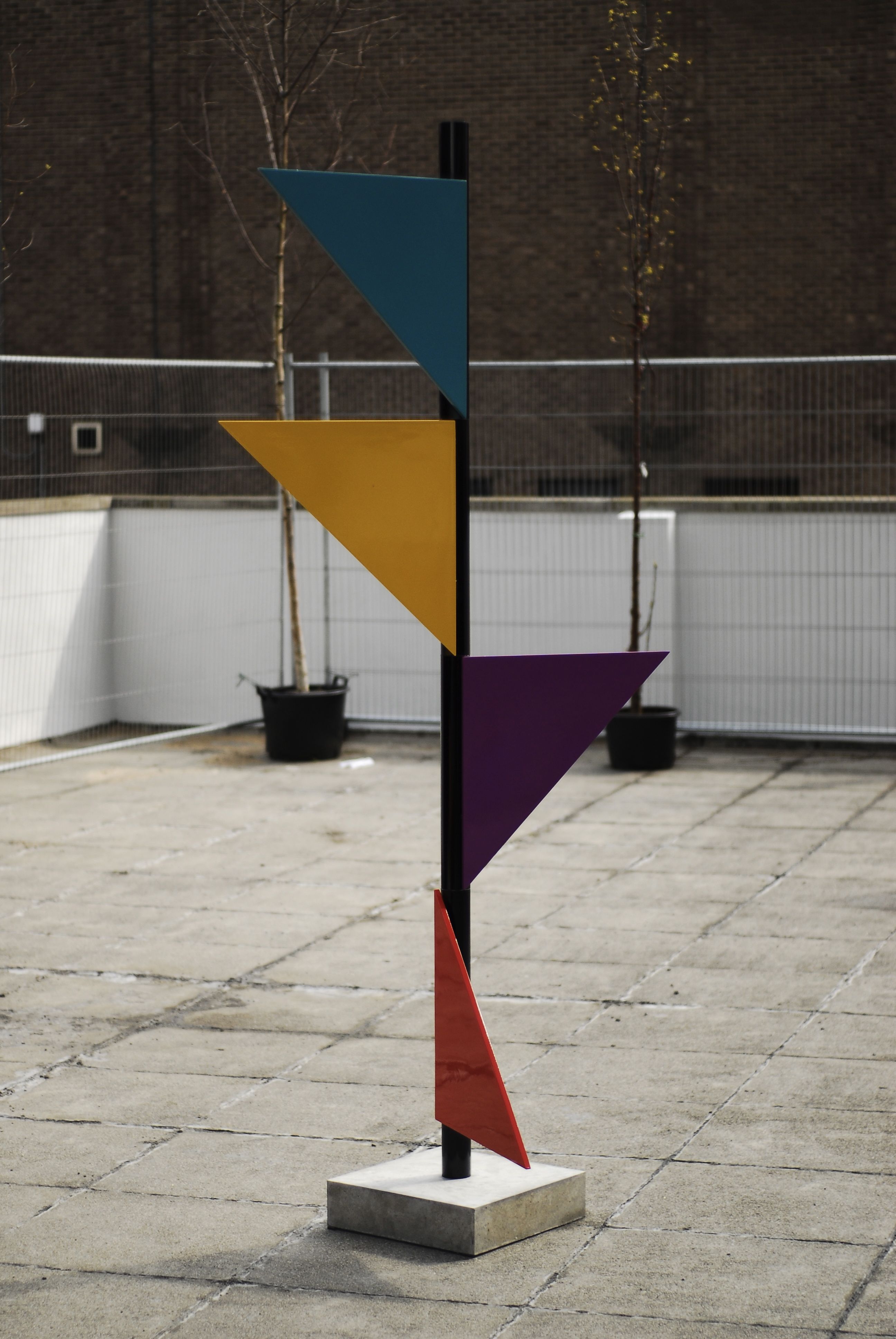 The new commissioned works produced for Dialogue of Hands included a musical sculpture by Chris Johanson called The Song the Sun Sent Us incorporating steel pan drums and to be played by adults and children and two colourful revolving metal sculptures by Camilla Løw, Operator (2012) and Compose (2012), both designed to be turned and touched.