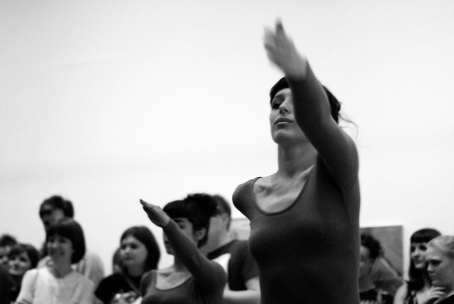 Almost 60 years her junior, Romany Dear is explaining how her work, March Your Legs Up And Down, will be performed live at Studio 58 by six dancers, including herself. At 23, she is the youngest artist in the exhibition.